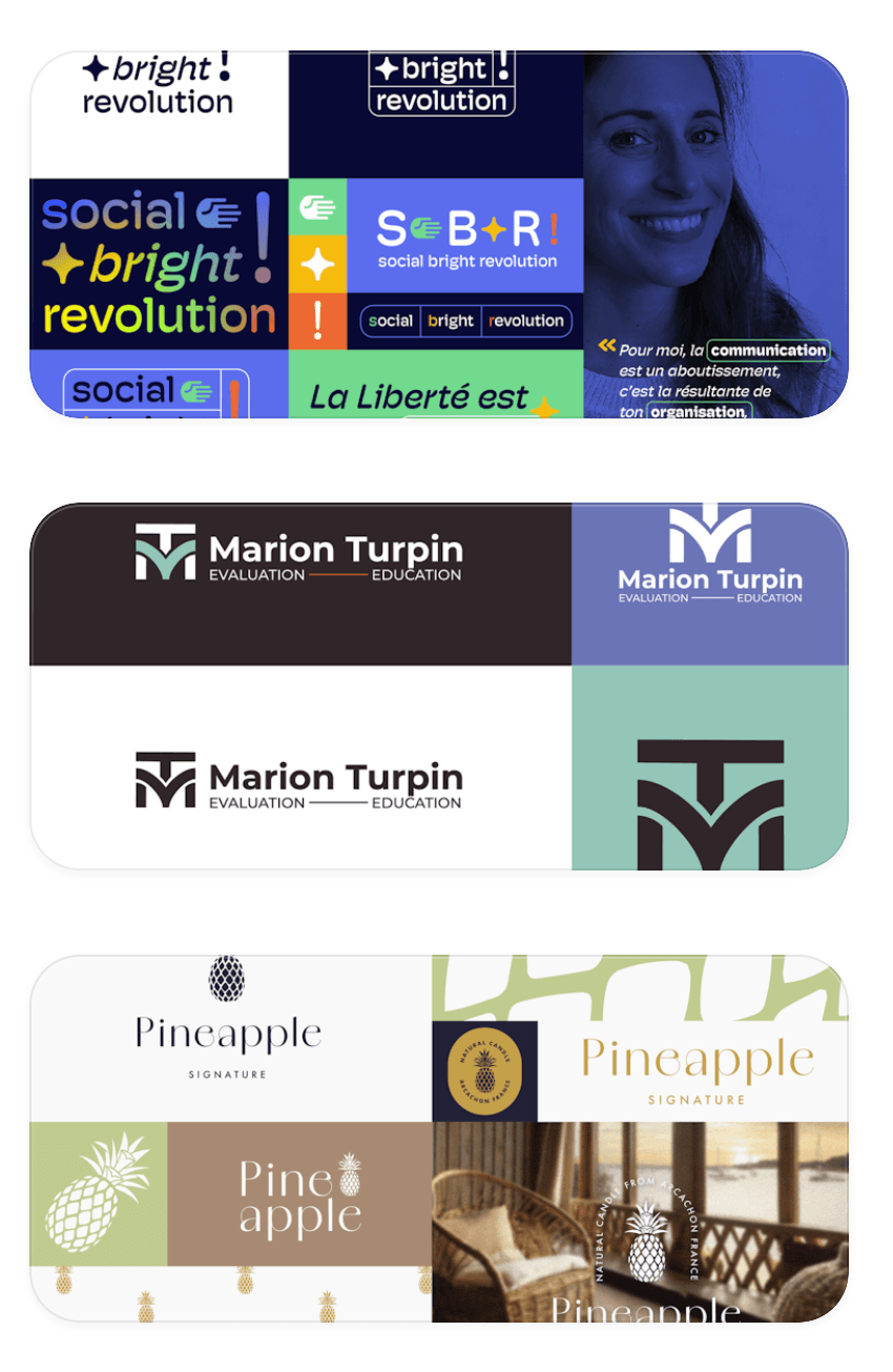Je propose différents packs d'identité visuelle en fonction de ton budget et de ton avancée dans la vie entrepreneuriale :)